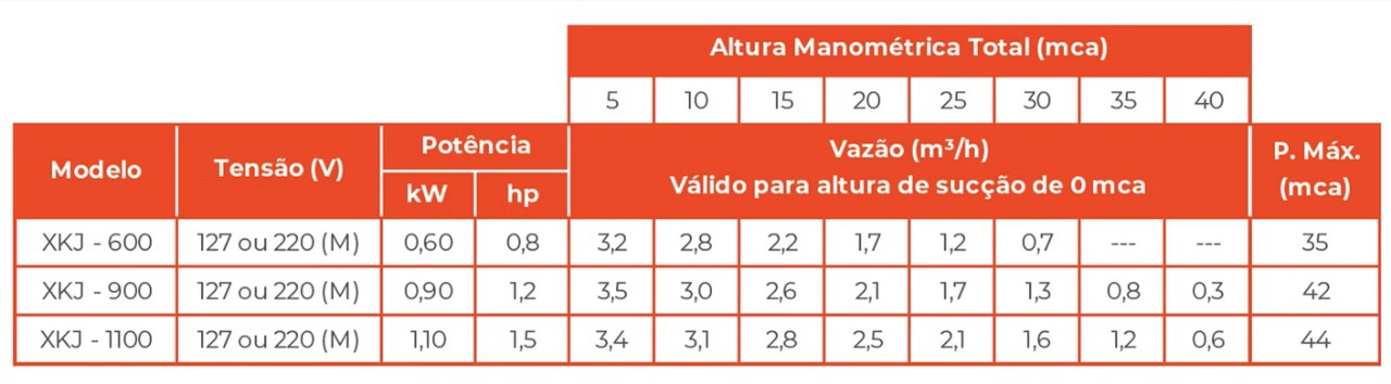 Possui corpo em ferro fundido com tratamento antiferrugem, eixo em aço inox AISI 304 e difusor em noryl, além de retirada automática de ar da tubulação.